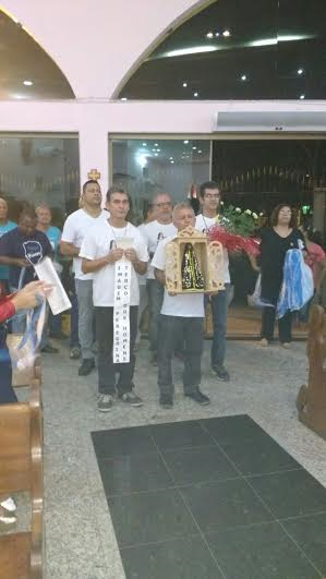 A imagem estava com o Grupo do Terço dos Homens da Paróquia Santa Sofia, em Cosmos, de onde saiu levada pelos irmãos do Terço, até chegar a paróquia de Santa Santa Teresinha..